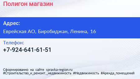 Полигон, магазин по адресу Еврейская АО, Биробиджан, Ленина, 16 в дальнейшем Организация, размещена в следующих категориях: