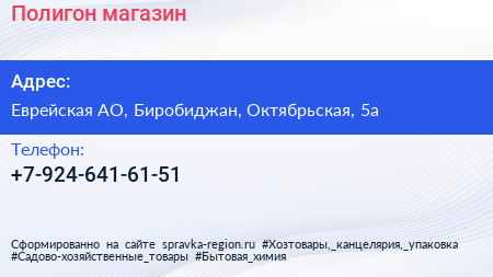 Полигон, магазин по адресу Еврейская АО, Биробиджан, Октябрьская, 5а в дальнейшем Организация, размещена в следующих категориях: