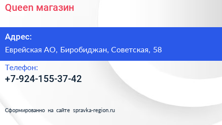 Queen, магазин по адресу Еврейская АО, Биробиджан, Советская, 58 в дальнейшем Организация, размещена в следующих категориях: