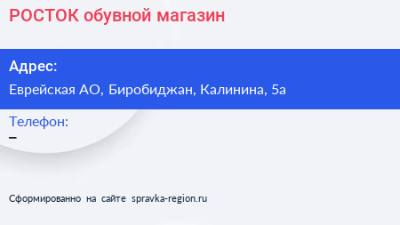 РОСТОК, обувной магазин по адресу Еврейская АО, Биробиджан, Калинина, 5а в дальнейшем Организация, размещена в следующих категориях: