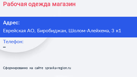 Рабочая одежда, магазин по адресу Еврейская АО, Биробиджан, Шолом-Алейхема, 3 к1 в дальнейшем Организация, размещена в следующих категориях: