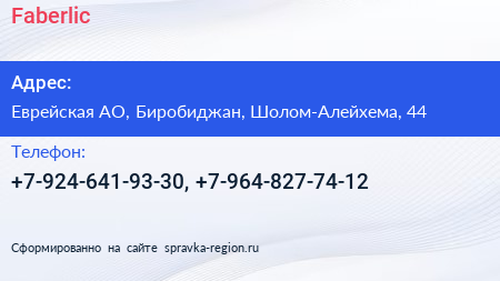 Faberlic по адресу Еврейская АО, Биробиджан, Шолом-Алейхема, 44 в дальнейшем Организация, размещена в следующих категориях:
