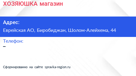 ХОЗЯЮШКА, магазин по адресу Еврейская АО, Биробиджан, Шолом-Алейхема, 44 в дальнейшем Организация, размещена в следующих категориях: