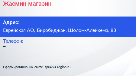 Жасмин, магазин по адресу Еврейская АО, Биробиджан, Шолом-Алейхема, 83 в дальнейшем Организация, размещена в следующих категориях: