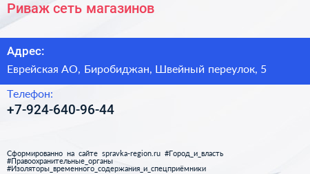 Риваж, сеть магазинов по адресу Еврейская АО, Биробиджан, Швейный переулок, 5 в дальнейшем Организация, размещена в следующих категориях: