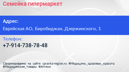 Семейка, гипермаркет по адресу Еврейская АО, Биробиджан, Дзержинского, 1 в дальнейшем Организация, размещена в следующих категориях:
