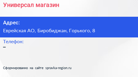 Универсал, магазин по адресу Еврейская АО, Биробиджан, Горького, 8 в дальнейшем Организация, размещена в следующих категориях: