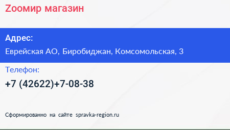 Zooмир, магазин по адресу Еврейская АО, Биробиджан, Комсомольская, 3 в дальнейшем Организация, размещена в следующих категориях: