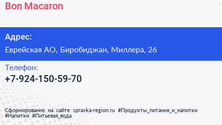 Bon Macaron по адресу Еврейская АО, Биробиджан, Миллера, 26 в дальнейшем Организация, размещена в следующих категориях: