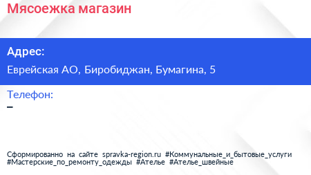 Мясоежка, магазин по адресу Еврейская АО, Биробиджан, Бумагина, 5 в дальнейшем Организация, размещена в следующих категориях: