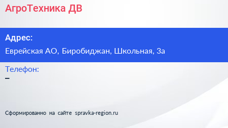 АгроТехника-ДВ по адресу Еврейская АО, Биробиджан, Школьная, 3а в дальнейшем Организация, размещена в следующих категориях: