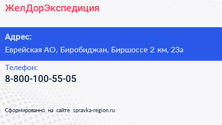 ЖелДорЭкспедиция по адресу Еврейская АО, Биробиджан, Биршоссе 2 км, 23а в дальнейшем Организация, размещена в следующих категориях: