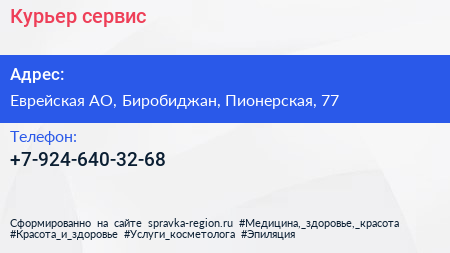 Курьер сервис по адресу Еврейская АО, Биробиджан, Пионерская, 77 в дальнейшем Организация, размещена в следующих категориях: