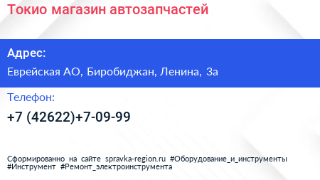 Токио, магазин автозапчастей по адресу Еврейская АО, Биробиджан, Ленина, 3а в дальнейшем Организация, размещена в следующих категориях: