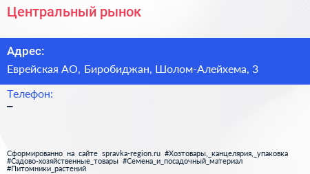 Центральный рынок по адресу Еврейская АО, Биробиджан, Шолом-Алейхема, 3 в дальнейшем Организация, размещена в следующих категориях: