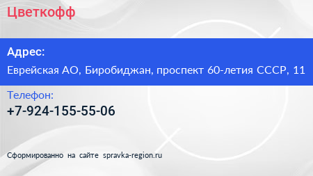 Цветкофф по адресу Еврейская АО, Биробиджан, проспект 60-летия СССР, 11 в дальнейшем Организация, размещена в следующих категориях: