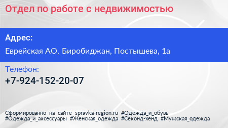 Отдел по работе с недвижимостью по адресу Еврейская АО, Биробиджан, Постышева, 1а в дальнейшем Организация, размещена в следующих категориях: