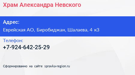Храм Александра Невского по адресу Еврейская АО, Биробиджан, Шалаева, 4 к3 в дальнейшем Организация, размещена в следующих категориях: