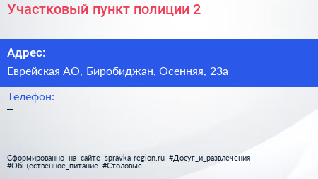 Участковый пункт полиции №2 по адресу Еврейская АО, Биробиджан, Осенняя, 23а в дальнейшем Организация, размещена в следующих категориях: