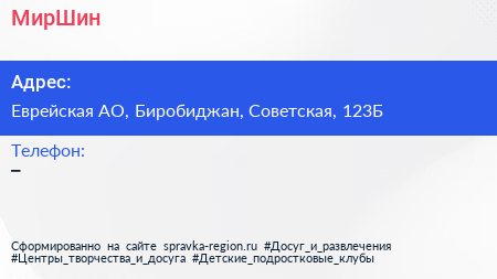 МирШин по адресу Еврейская АО, Биробиджан, Советская, 123Б в дальнейшем Организация, размещена в следующих категориях: