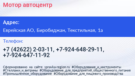 Мотор, автоцентр по адресу Еврейская АО, Биробиджан, Текстильная, 1а в дальнейшем Организация, размещена в следующих категориях: