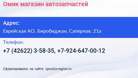 Омик, магазин автозапчастей по адресу Еврейская АО, Биробиджан, Саперная, 21а в дальнейшем Организация, размещена в следующих категориях:
