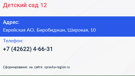 Детский сад №12 по адресу Еврейская АО, Биробиджан, Широкая, 10 в дальнейшем Организация, размещена в следующих категориях: