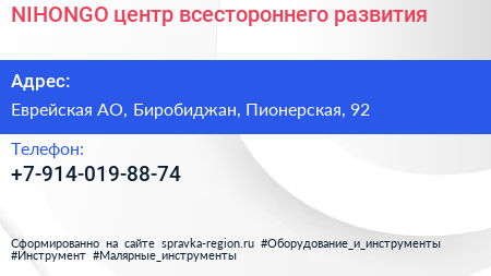 NIHONGO, центр всестороннего развития по адресу Еврейская АО, Биробиджан, Пионерская, 92 в дальнейшем Организация, размещена в следующих категориях: