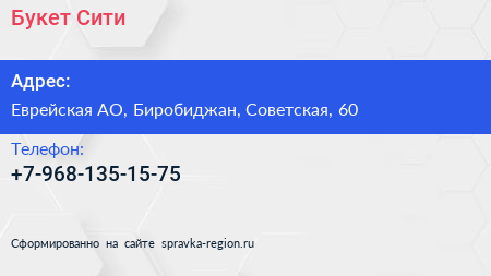 Букет Сити по адресу Еврейская АО, Биробиджан, Советская, 60 в дальнейшем Организация, размещена в следующих категориях: