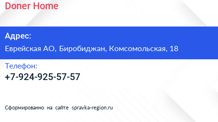 Doner Home по адресу Еврейская АО, Биробиджан, Комсомольская, 18 в дальнейшем Организация, размещена в следующих категориях: