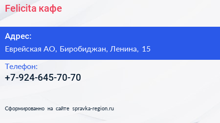 Felicita, кафе по адресу Еврейская АО, Биробиджан, Ленина, 15 в дальнейшем Организация, размещена в следующих категориях: