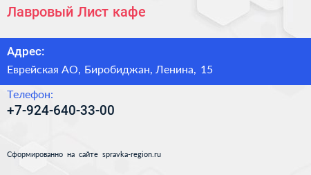 Лавровый Лист, кафе по адресу Еврейская АО, Биробиджан, Ленина, 15 в дальнейшем Организация, размещена в следующих категориях: