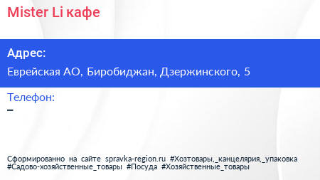 Mister.Li, кафе по адресу Еврейская АО, Биробиджан, Дзержинского, 5 в дальнейшем Организация, размещена в следующих категориях: