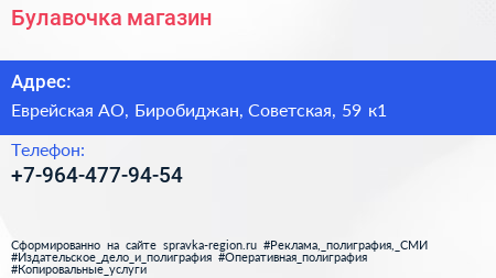 Булавочка, магазин по адресу Еврейская АО, Биробиджан, Советская, 59 к1 в дальнейшем Организация, размещена в следующих категориях: