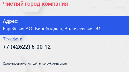 Чистый город, компания по адресу Еврейская АО, Биробиджан, Волочаевская, 41 в дальнейшем Организация, размещена в следующих категориях:
