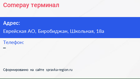 Comepay, терминал по адресу Еврейская АО, Биробиджан, Школьная, 18а в дальнейшем Организация, размещена в следующих категориях: