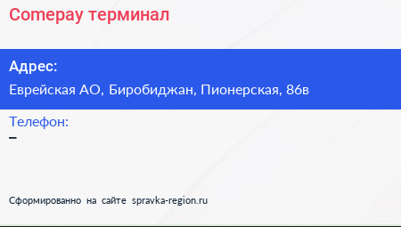 Comepay, терминал по адресу Еврейская АО, Биробиджан, Пионерская, 86в в дальнейшем Организация, размещена в следующих категориях: