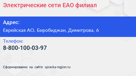 Электрические сети ЕАО, филиал по адресу Еврейская АО, Биробиджан, Димитрова, 6 в дальнейшем Организация, размещена в следующих категориях: