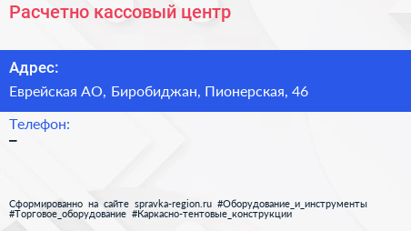 Расчетно-кассовый центр по адресу Еврейская АО, Биробиджан, Пионерская, 46 в дальнейшем Организация, размещена в следующих категориях: