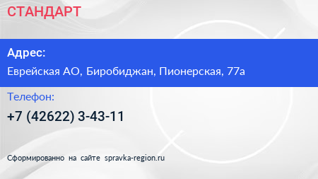 СТАНДАРТ по адресу Еврейская АО, Биробиджан, Пионерская, 77а в дальнейшем Организация, размещена в следующих категориях: