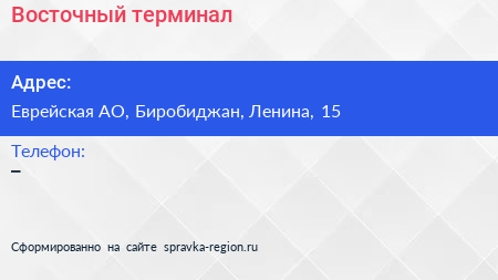 Восточный, терминал по адресу Еврейская АО, Биробиджан, Ленина, 15 в дальнейшем Организация, размещена в следующих категориях: