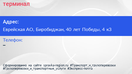 терминал по адресу Еврейская АО, Биробиджан, 40 лет Победы, 4 к3 в дальнейшем Организация, размещена в следующих категориях: