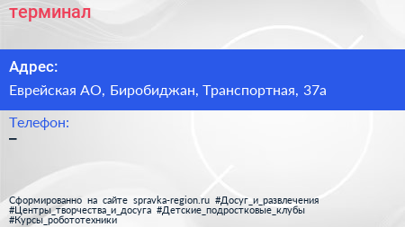 терминал по адресу Еврейская АО, Биробиджан, Транспортная, 37а в дальнейшем Организация, размещена в следующих категориях: