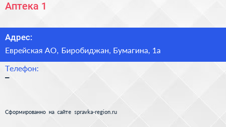 Аптека №1 по адресу Еврейская АО, Биробиджан, Бумагина, 1а в дальнейшем Организация, размещена в следующих категориях: