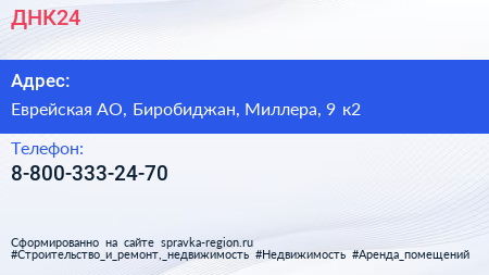 ДНК24 по адресу Еврейская АО, Биробиджан, Миллера, 9 к2 в дальнейшем Организация, размещена в следующих категориях: