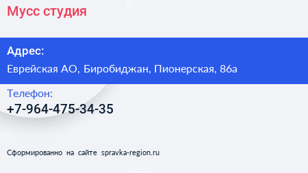 Мусс, студия по адресу Еврейская АО, Биробиджан, Пионерская, 86а в дальнейшем Организация, размещена в следующих категориях: