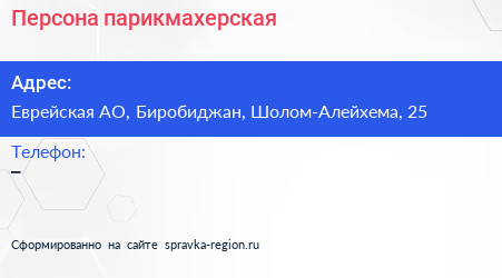 Персона, парикмахерская по адресу Еврейская АО, Биробиджан, Шолом-Алейхема, 25 в дальнейшем Организация, размещена в следующих категориях:
