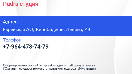 Pudra, студия по адресу Еврейская АО, Биробиджан, Ленина, 44 в дальнейшем Организация, размещена в следующих категориях: