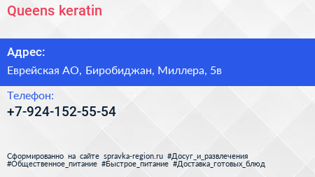 Queens keratin по адресу Еврейская АО, Биробиджан, Миллера, 5в в дальнейшем Организация, размещена в следующих категориях:
