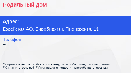 Родильный дом по адресу Еврейская АО, Биробиджан, Пионерская, 11 в дальнейшем Организация, размещена в следующих категориях: